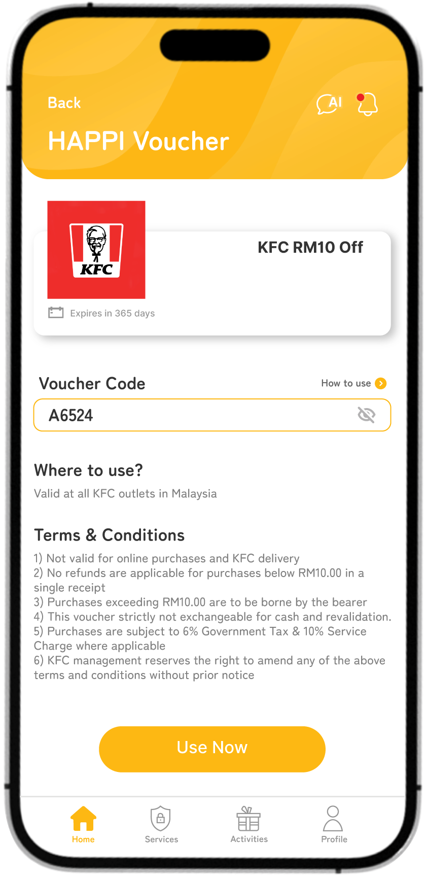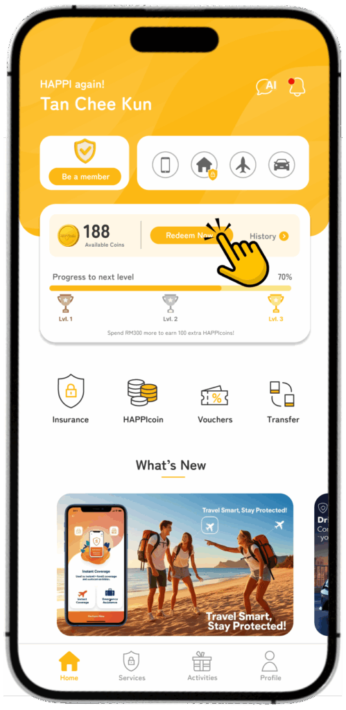 Earn rewards when you protect what matters. HAPPIcoin lets you redeem vouchers online or real-world benefits through our exclusive merchant network.
